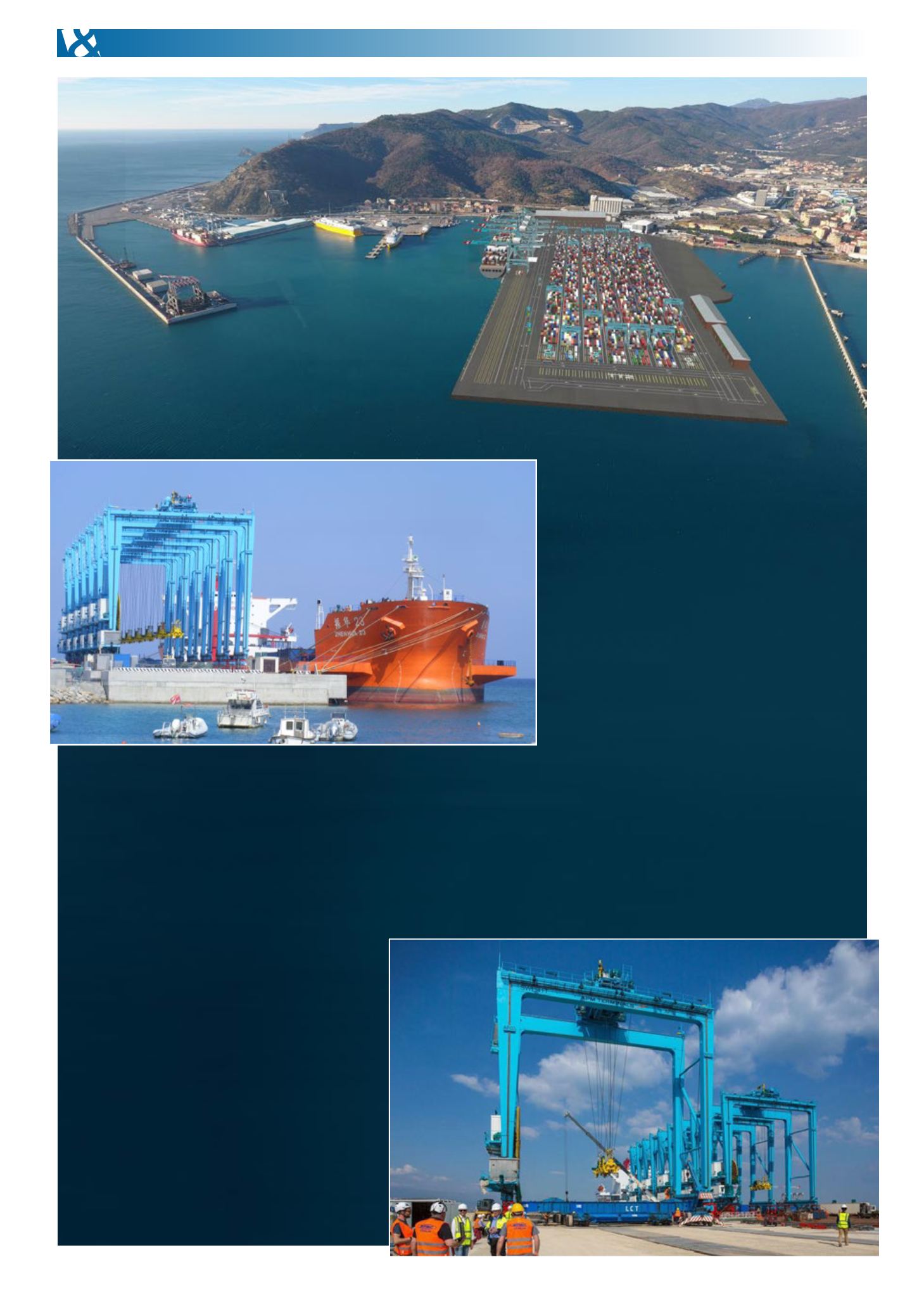 Sopra come sarà il futuro terminal di Vado Ligure; a sinistra